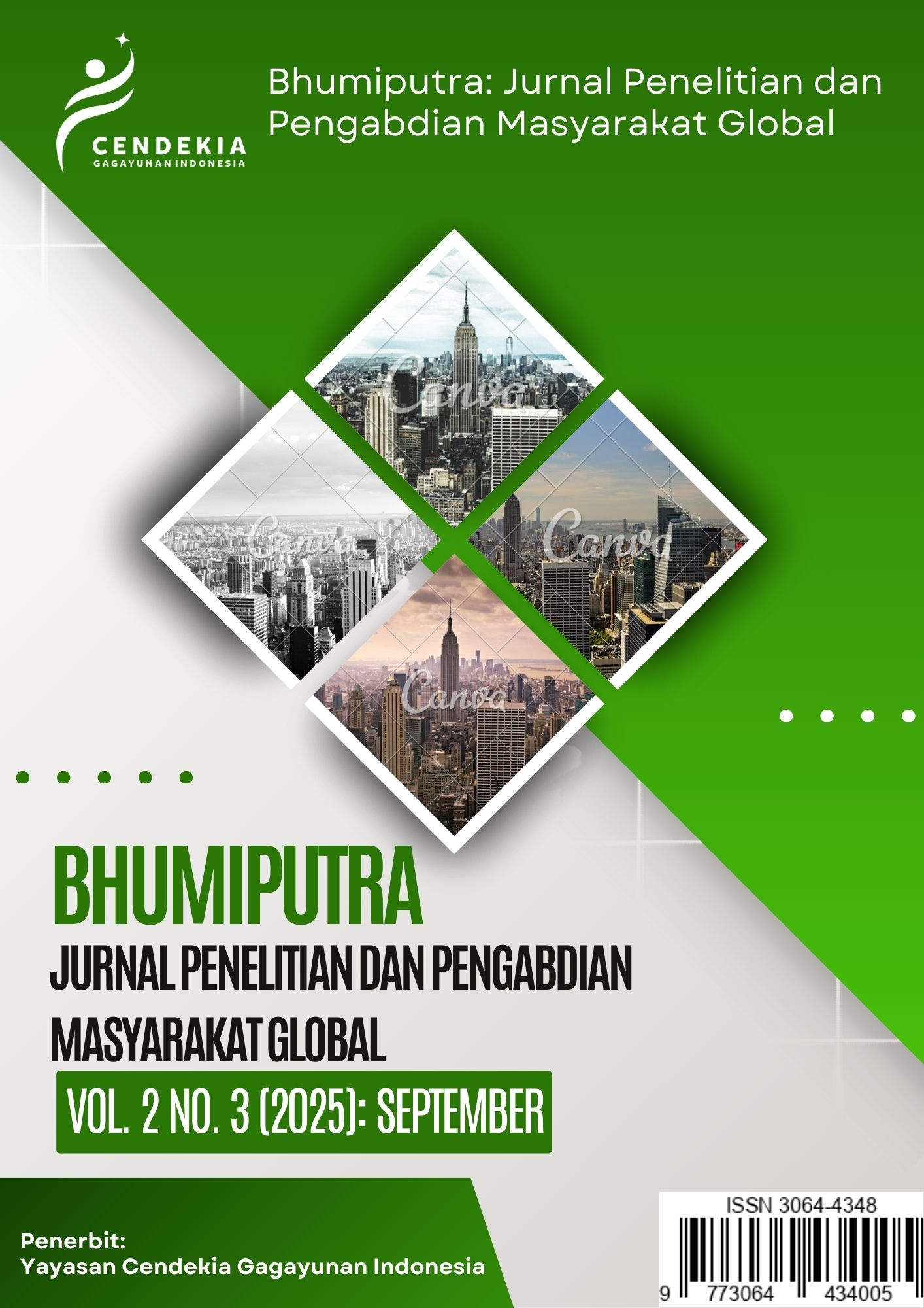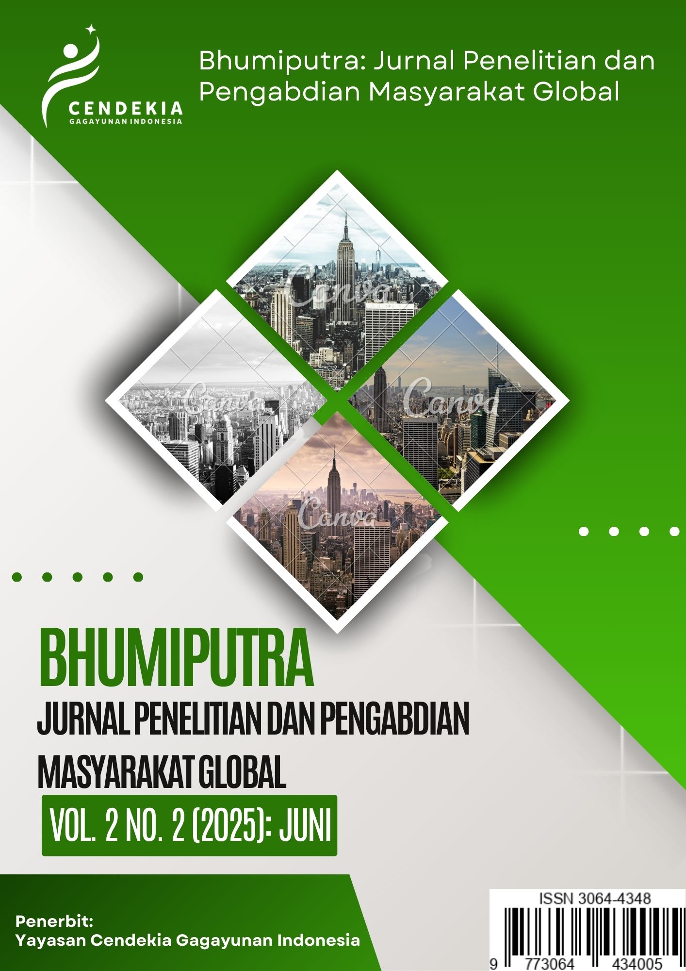 Bhumiputra: Jurnal Penelitian dan Pengabdian Masyarakat Global adalah jurnal ilmiah yang menerima artikel dalam bahasa Indonesia dan bahasa Inggris, P-ISSN: [-], E-ISSN: [3064-4348] diterbitkan secara berkala dan berfokus pada isu-isu global terkait pembangunan berkelanjutan, kemanusiaan, dan keberagaman budaya. Jurnal ini menerima artikel dalam bahasa Indonesia dan bahasa Inggris yang berasal dari hasil penelitian asli, kajian literatur, atau laporan pengabdian masyarakat. Bidang kajian yang dibahas meliputi ilmu sosial, lingkungan, teknologi, Teknik Sipil, Teknik Komputer, Ilmu Komunikasi, Pariwisata, Manajemen Pariwisata, Teknik Global, kesehatan, dan humaniora dan bidang kajian lainnya. Tujuan utama Bhumiputra adalah menjadi wadah bagi para akademisi, praktisi, dan masyarakat umum untuk berbagi pengetahuan dan pengalaman dalam rangka meningkatkan kualitas hidup masyarakat di seluruh dunia. Jurnal ini juga bertujuan untuk mendorong kolaborasi antar peneliti dari berbagai disiplin ilmu dan memberikan kontribusi bagi pengembangan kebijakan publik yang lebih baik. Bhumiputra menganut kebijakan open access, sehingga semua artikel yang terbit dapat diakses secara bebas oleh masyarakat luas. Proses review artikel dilakukan melalui sistem peer review double-blind untuk memastikan kualitas dan orisinalitas setiap tulisan. Jurnal ini diterbitkan sebanyak 4 kali dalam setahun (Maret, Juni, September, dan Desember).